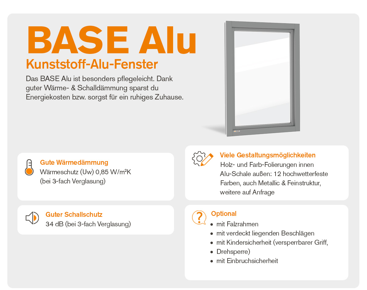 Das BASE Alu hat außen eine pflegeleichte Alu-Schale. Diese sorgt für idealen Schutz vor allen Wettereinflüssen.