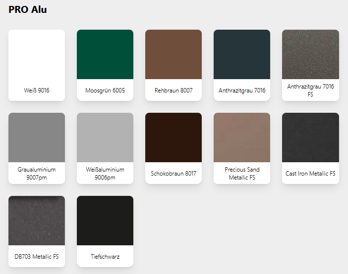 Das PRO Alu hat außen eine hochwetterfeste Alu-Schale. Diese ist sehr pflegeleicht und sorgt für idealen Schutz vor allen Wettereinflüssen.