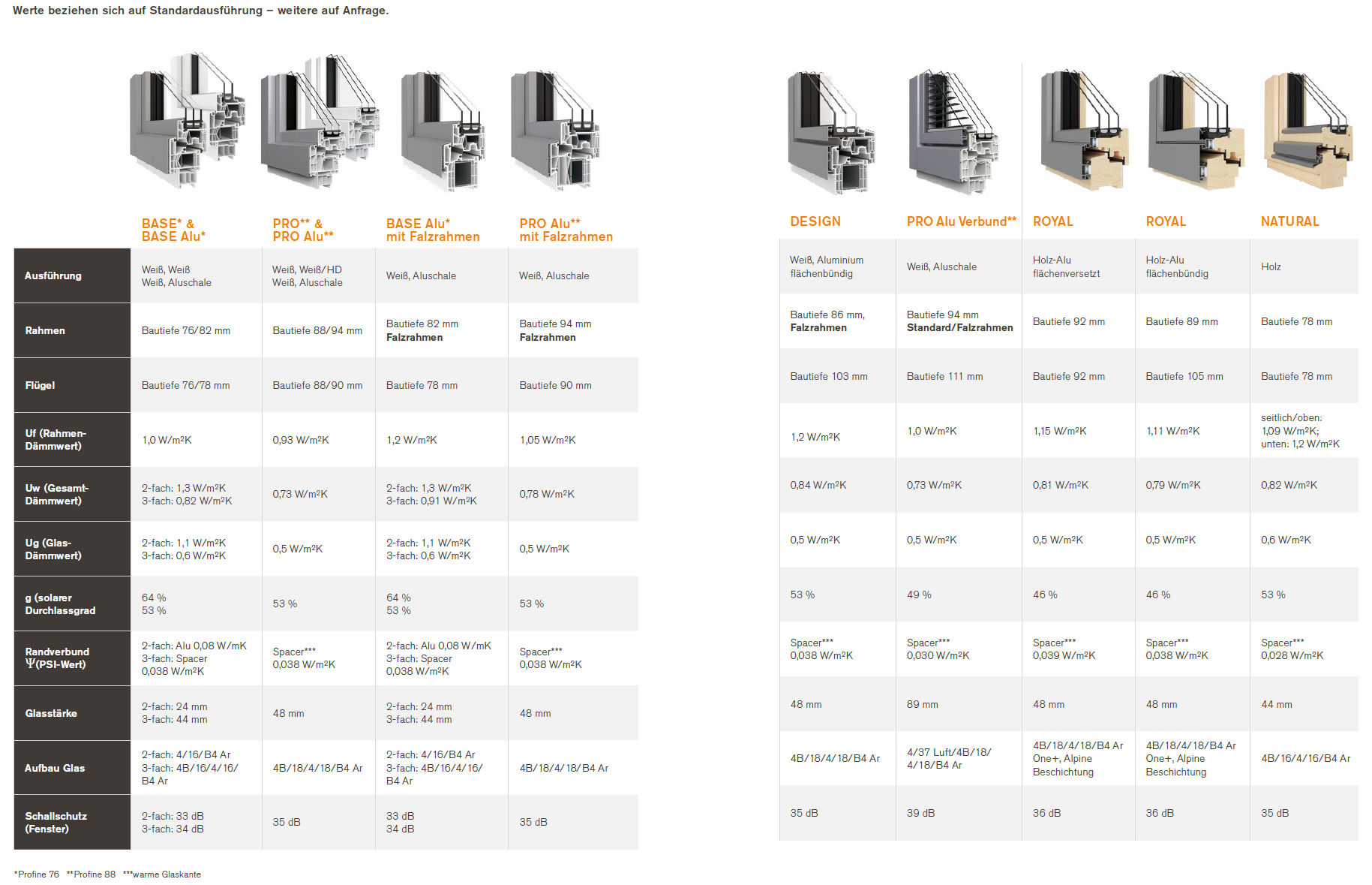 * Optional mit 3-fach Verglasung, verdeckt liegenden Beschlägen sowie Folierungen möglich